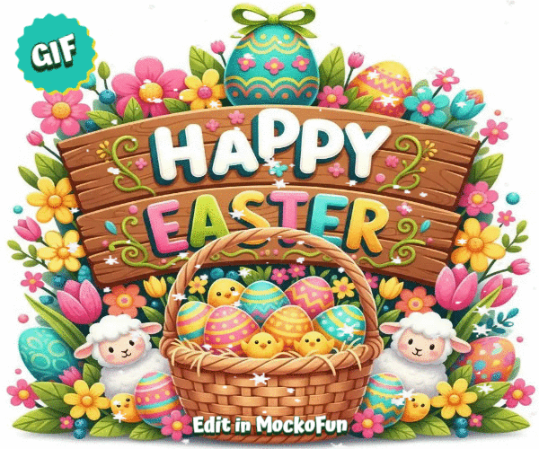 Happy Easter animated GIF that you can edit online with MockoFun. Replace the text, add you Happy Easter wishes and download the GIF.