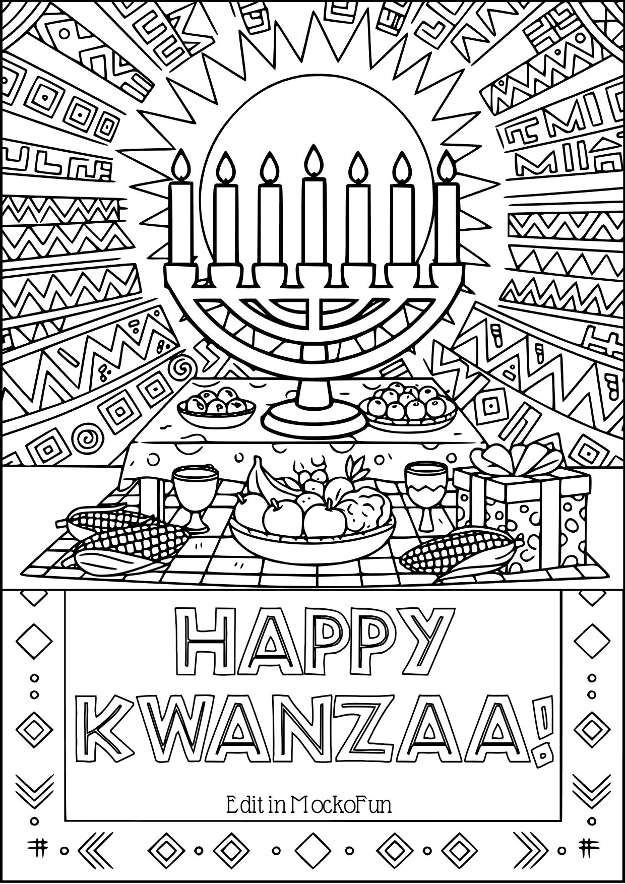 Create your own Kwanzaa coloring pages with this free online template from Mockofun. Edit the text and add your own personalized Kwanzaa greetings.