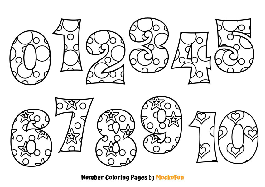 Number coloring pages for preschool that are available for download on MockoFun. Create your own numbers coloring book to play with you kids!